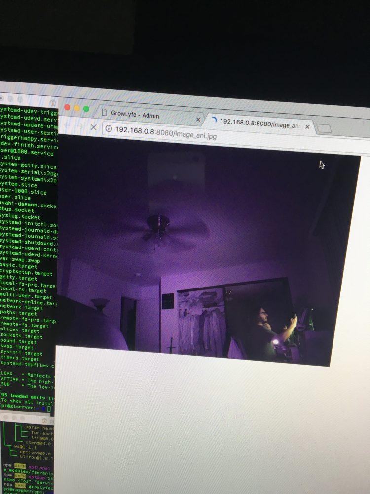 The first grow cam was created out of cardboard and microprocessors. The camera streamed via RTMP back to the computer.