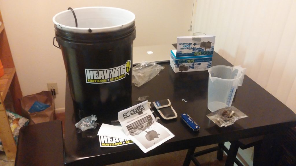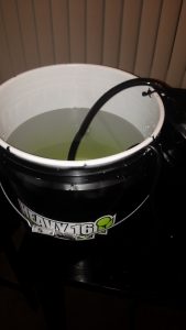 This was the beginning of working to automate the feeding process. The steps I had been learning thus far were so manual. I knew there had to be an easier way. This was the first device built based on a growers recommendation. It’s a basic mixer setup that moves the fluids around the bucket allowing for even mixing.